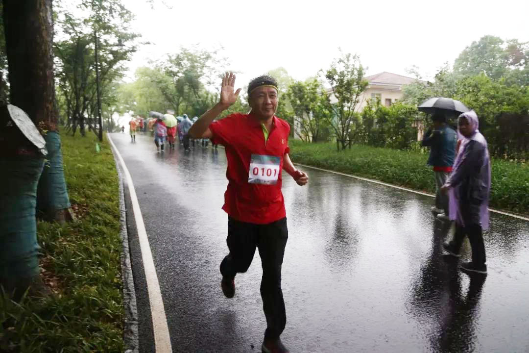 劉建華體力充沛,邊跑邊打招呼