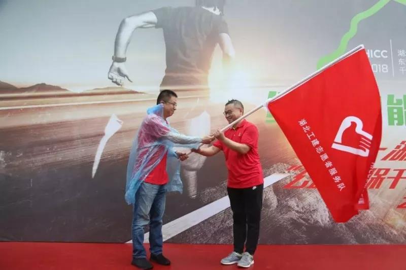 向湖北工建志愿者服務(wù)隊(duì)授旗